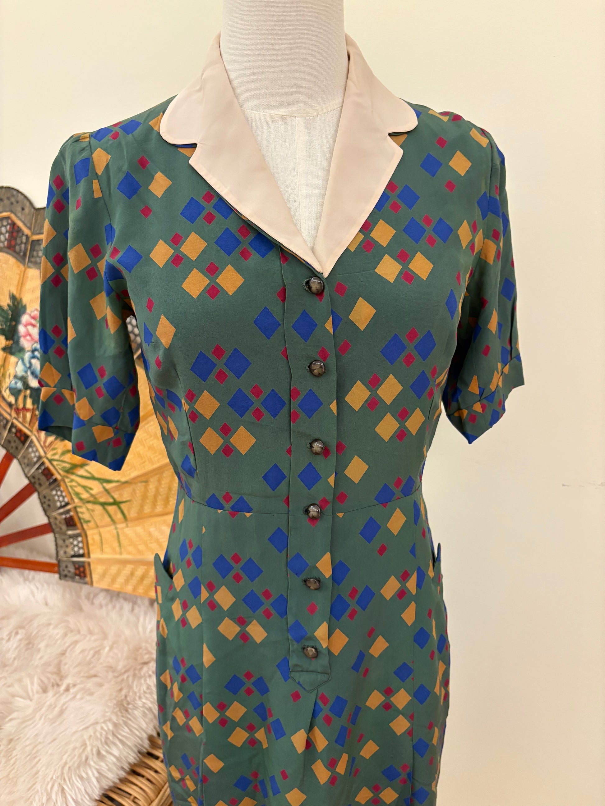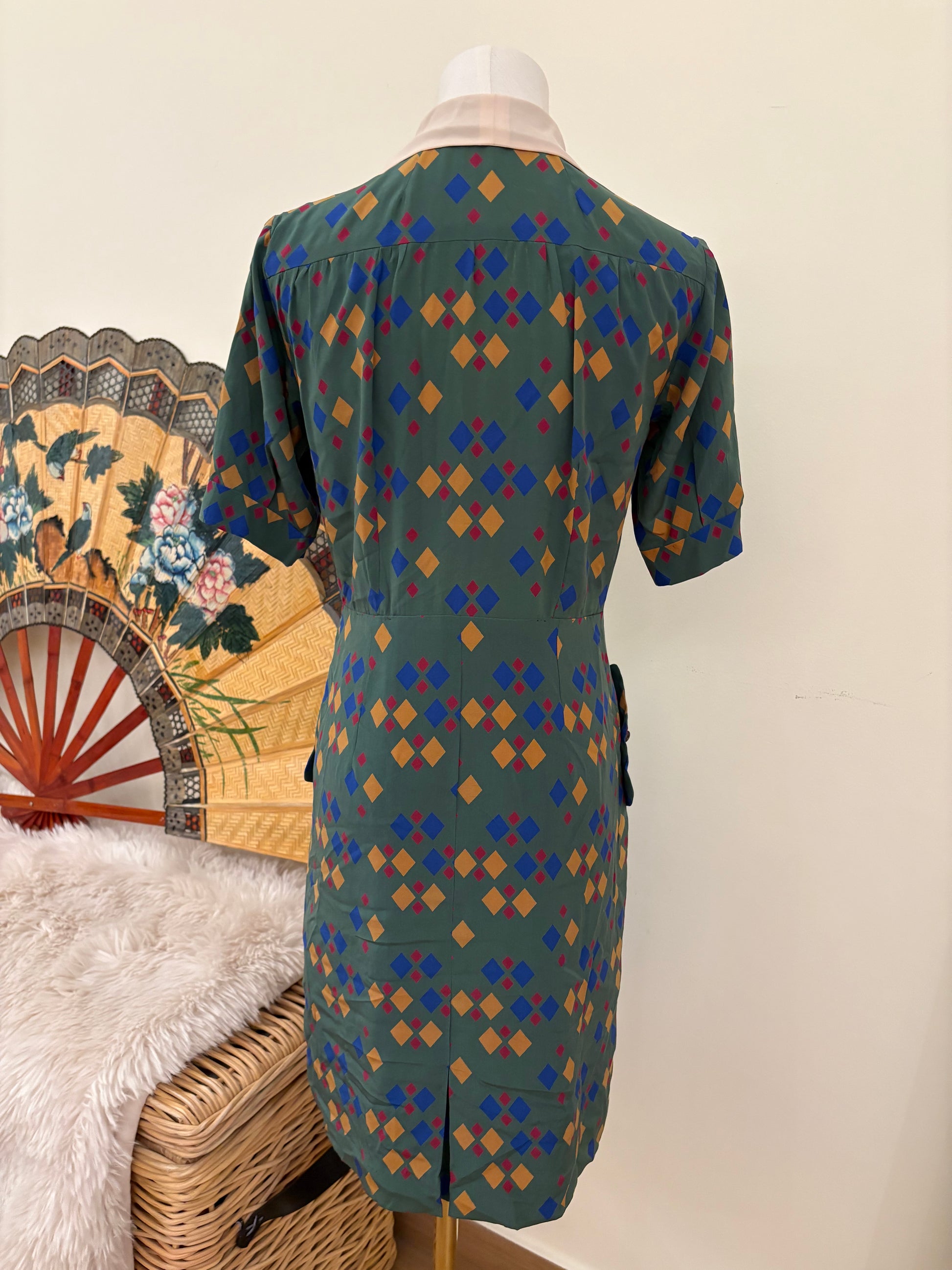 1940s Diamond Print Silk Dress
