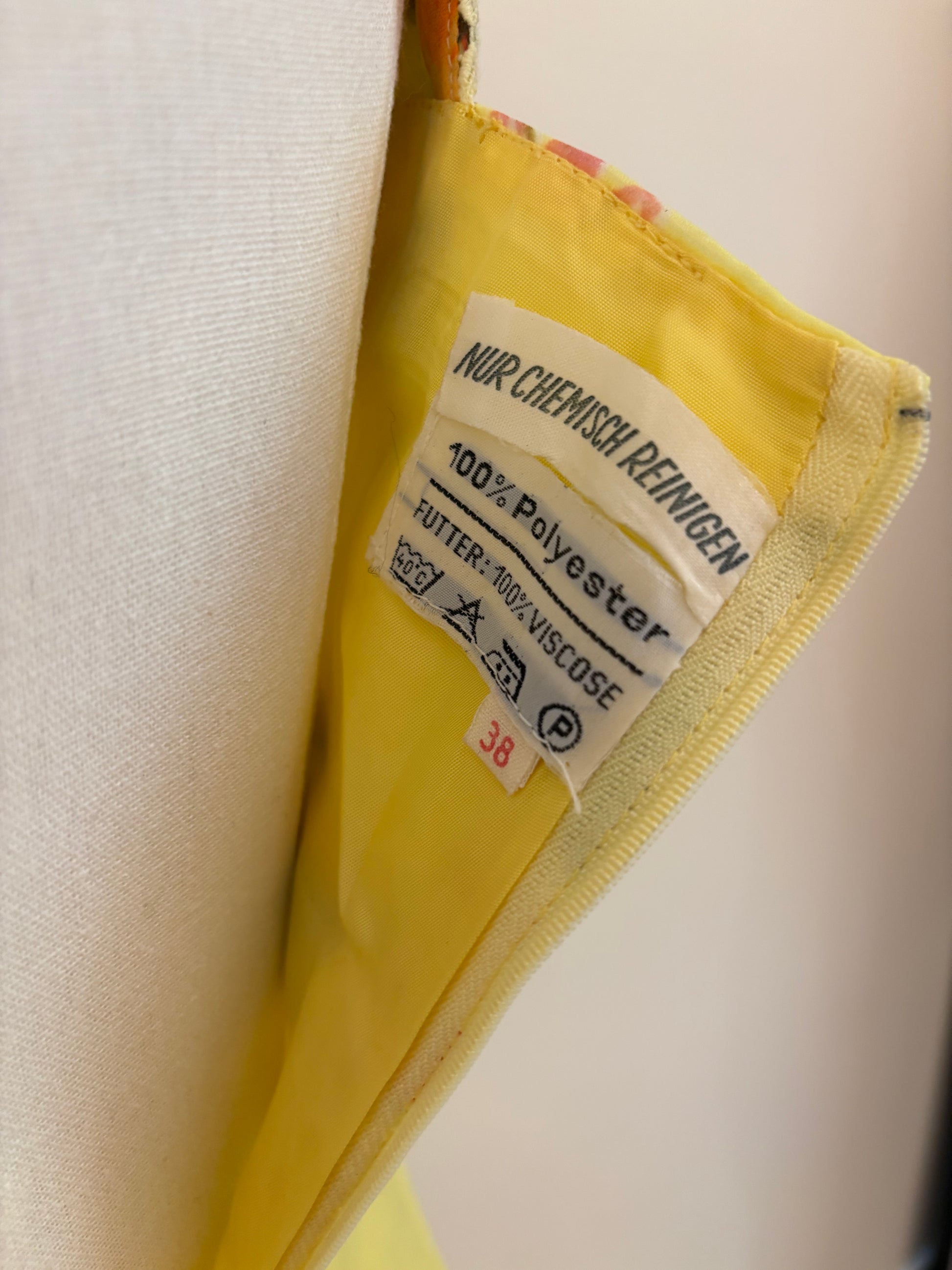 A dreamy 60s maxi dress in a soft lemon yellow, bursting with bold rose and daisy blooms. Featuring wide crochet-trim straps and a flattering empire waist, this garden party beauty is made for twirling in the sunshine.