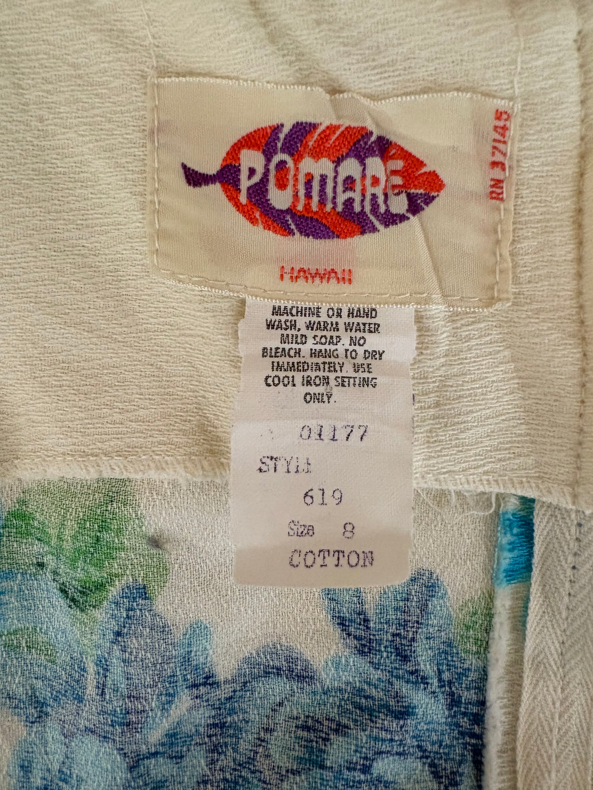 Make waves in this breathtaking 1960s floral maxi, featuring a stunning cascade of turquoise and sapphire blooms that frame the silhouette like a painted garden. Crafted from a creamy textured fabric, this sleeveless beauty hugs gently at the bust before flowing into a graceful A-line skirt. The curved empire waist adds a flattering touch, while the vibrant florals bring a fresh, tropical charm. Whether you’re headed to a summer soirée or just want to feel like a walking watercolour, this piece is pure retro romance.