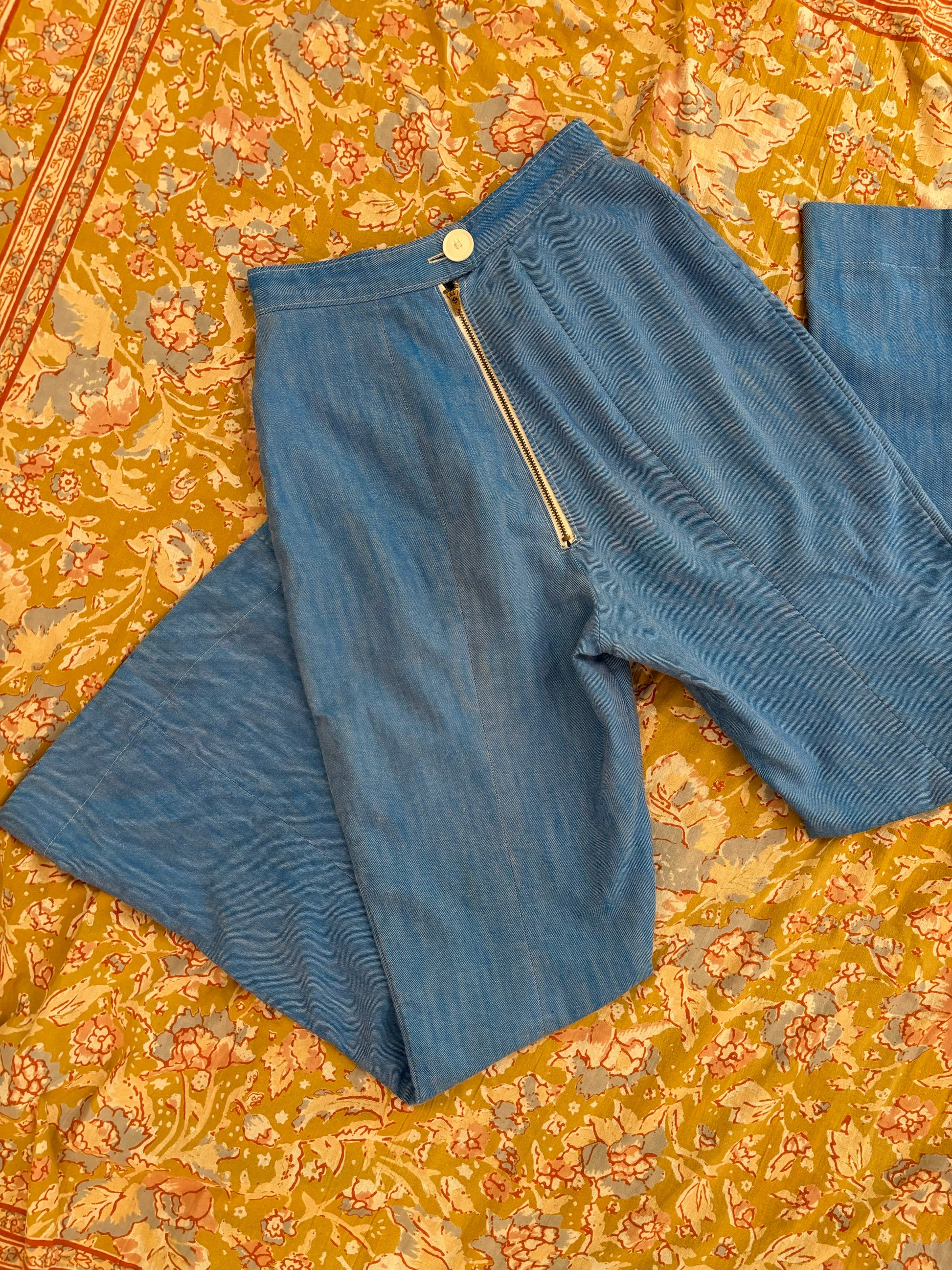 Step back into the groovy 1970s with our Bellbottoms Blues! These iconic pants feature a flare leg and high waist, giving you a flattering look