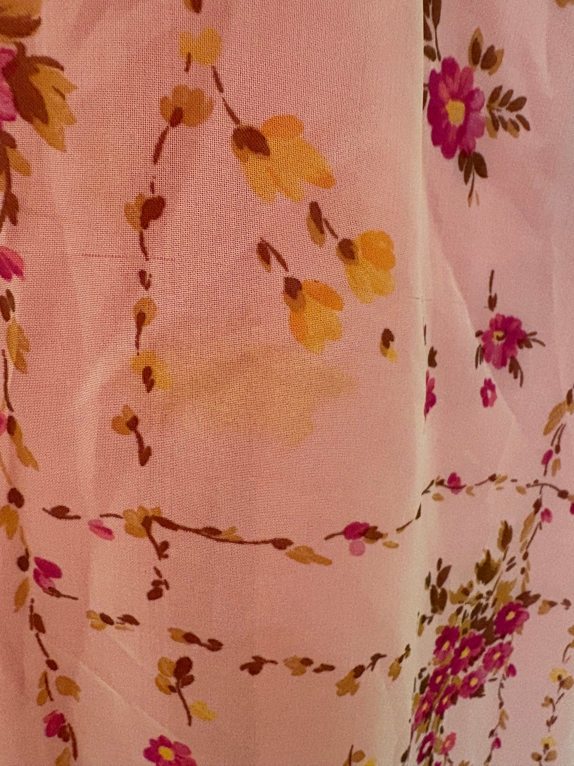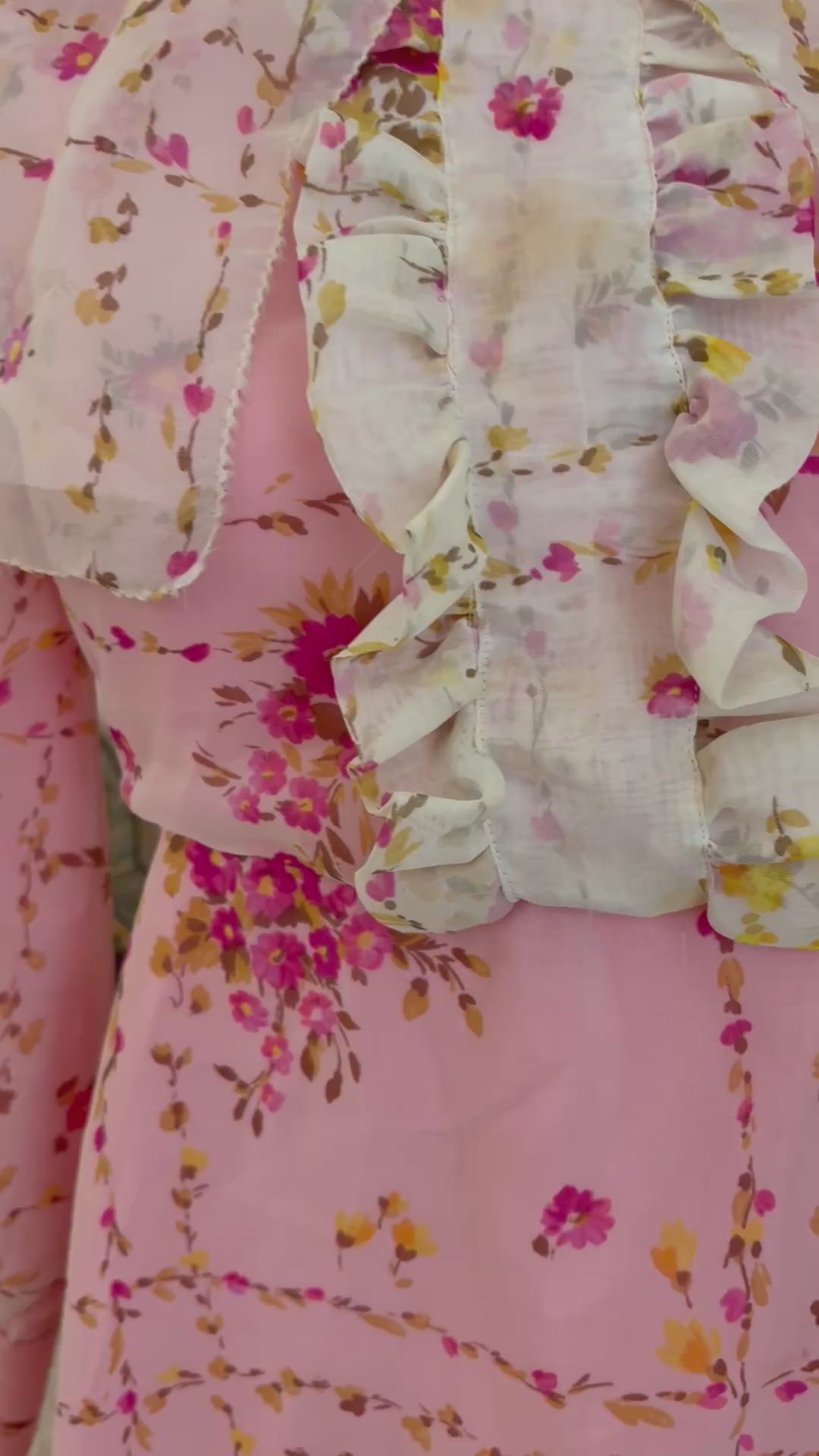 This 1970s handmade prairie dress is a perfect addition to any vintage wardrobe. The flowy silhouette and delicate details give this dress a romantic feel